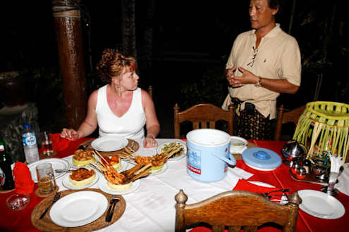 Indonesische Reistafel im Anom-Beach-Inn Restaurant