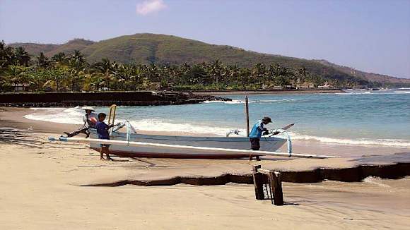 Fischer in der ruhigen Bucht vorm ANOM BEACH