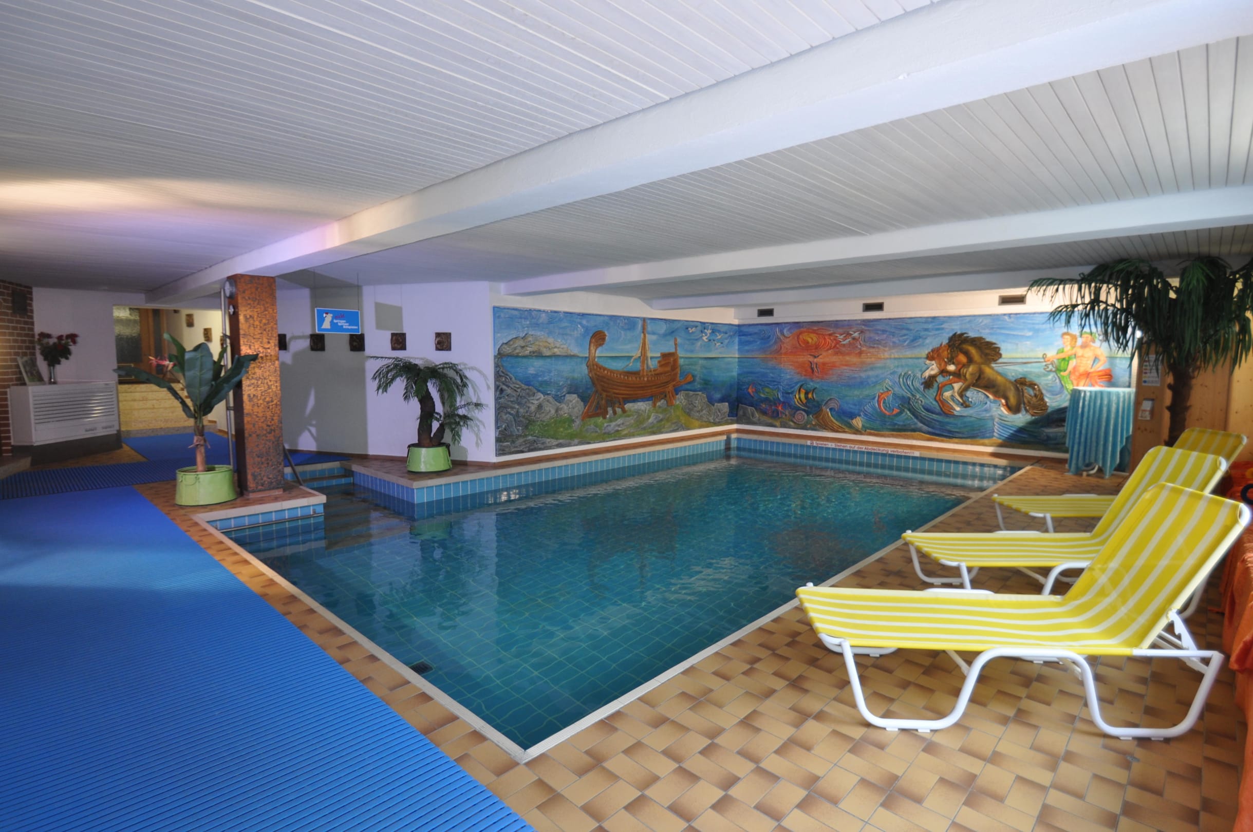 Hallenbad 28°CUnser gepflegtes Badeland bietet ausserdem Saunen, Biosauna, Infrarotsauna und finn. Sauna, und eine Wellness-und Kosmetikabteilung