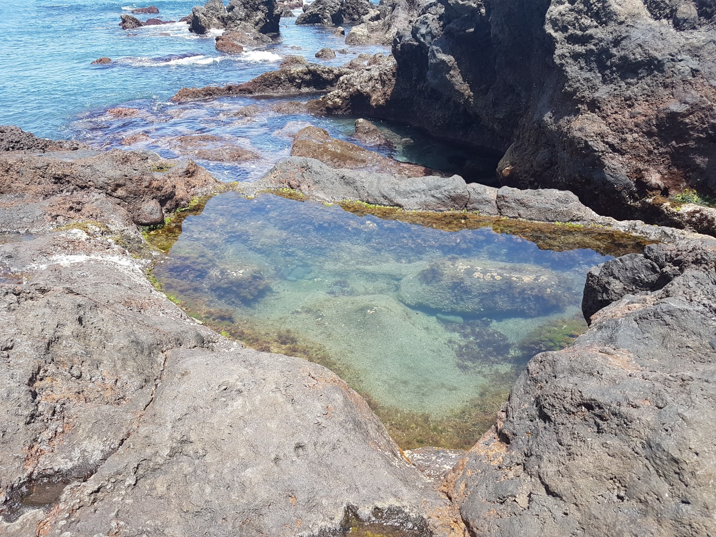Natürliche Becken in Lavazunge mit kleinen Fischen