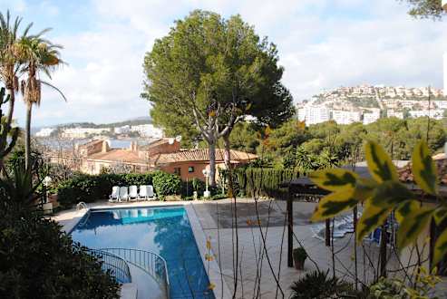 Blick vom Balkon zum Pool