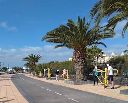 Fitnessgeräte unten an der Promenade (geradeaus die Straße runter links)