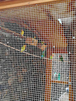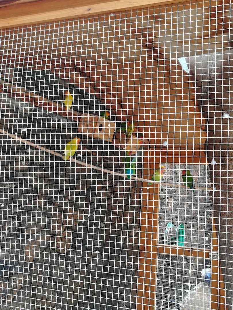 Direkt am Pool ein Vogelhäuschen mit süßen lauten Papageien