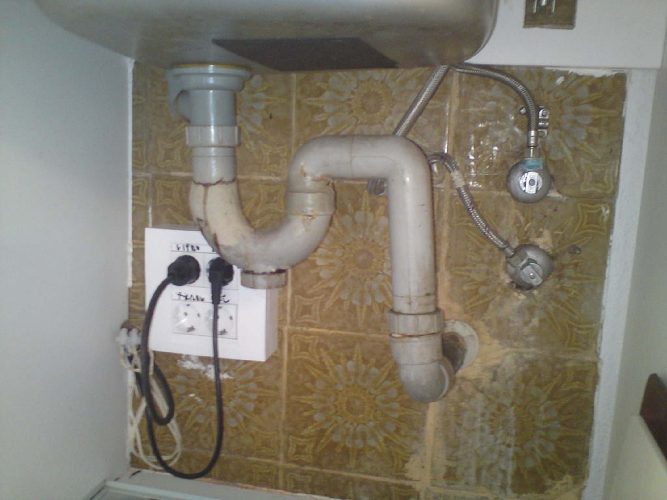 Kabel u. Abflussrohr Unterschrank Spüle
