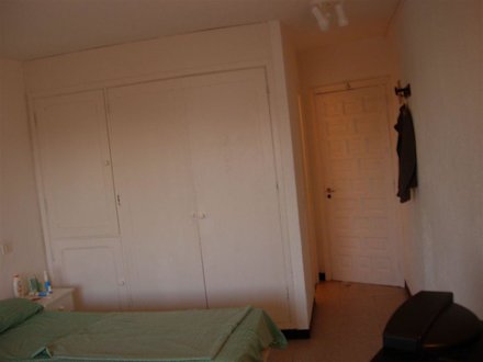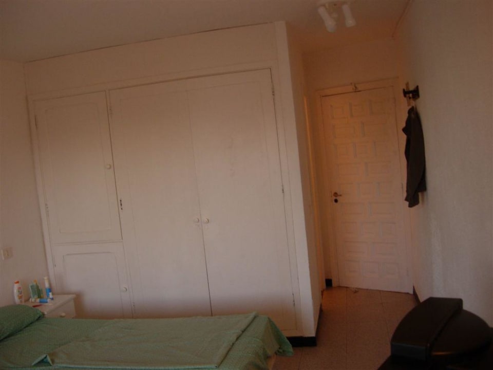 Bett und Sicht zur Eingangstür