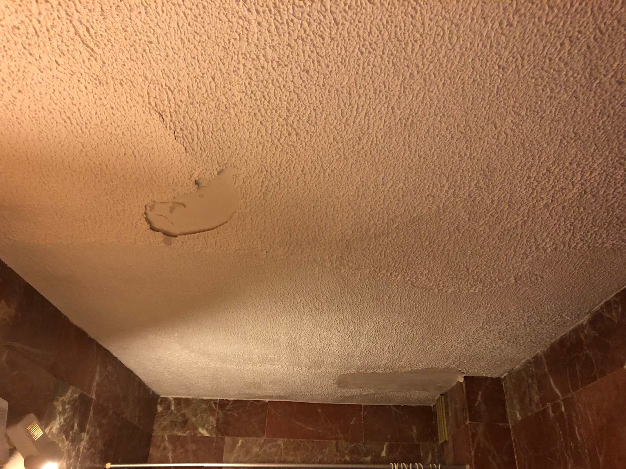 Defekte und schlecht ausgebesserte Decke im Bad