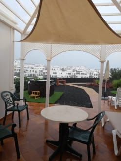 Blick auf Terrasse des Bungalows