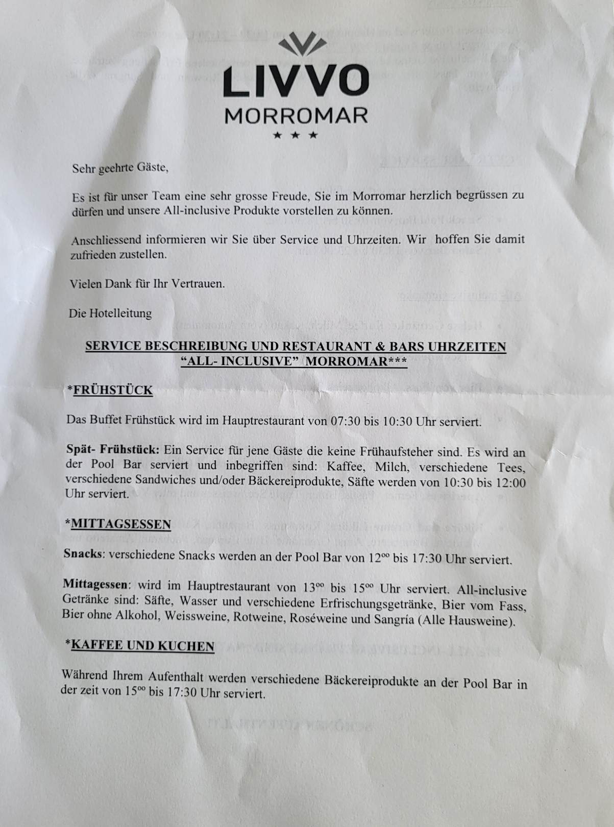 Information bei der Ankunft.