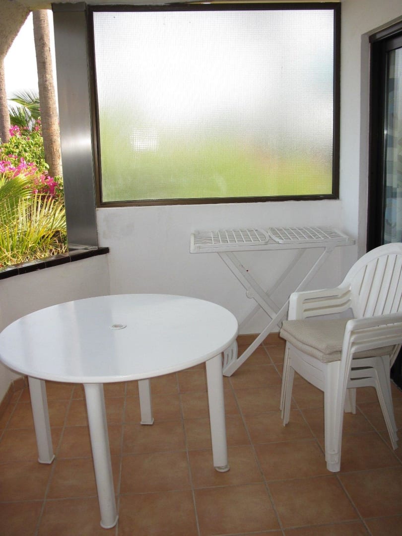 Balkon: Stühle, Tisch, WäscheständerEin riesiger Tisch - war im ersten Leben bestimmt ein Roulette-Tisch ;D In die Mitte kann man mit etwas Geschick den Schirm stellen - dieser wackelt jedoch ziemlich herum und ist im stabilen und standfesten Ständer besser aufgehoben