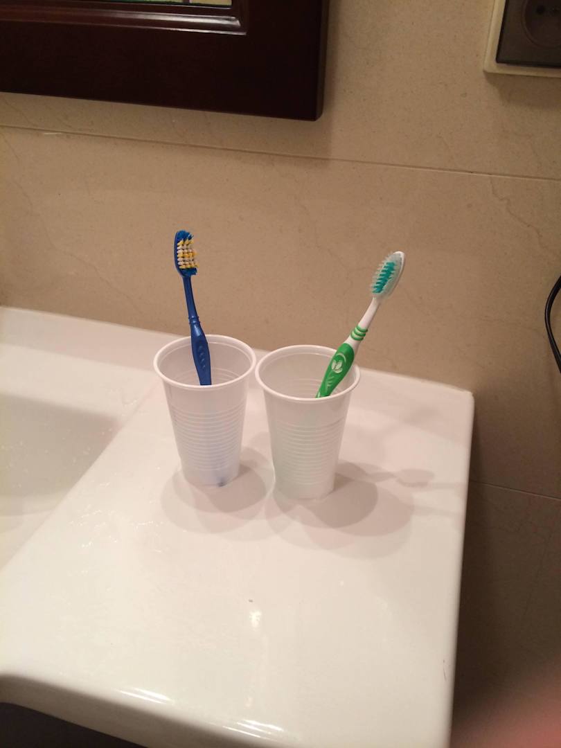 Takie oto kubeczki zastaliśmy na wodę. W normalnych hotelach są one z grubego plastiku, lub szkła. Te przewracały się pod ciężarem szczoteczki.