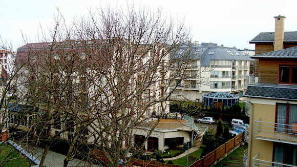 Sehr um die Ecke geblicktBlick auf das Hotel "Gold" , Rückansicht, genau gegenüber , sehr dicht, Apartment "Nautilus"