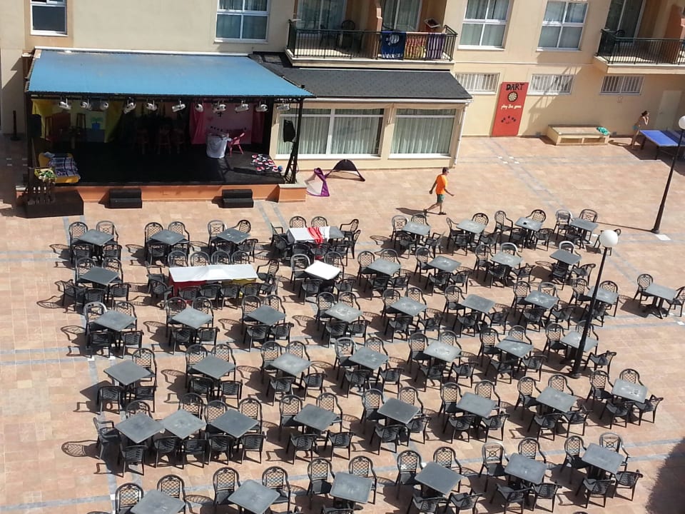 Blick vom Flur auf die Plaza mit Bühne