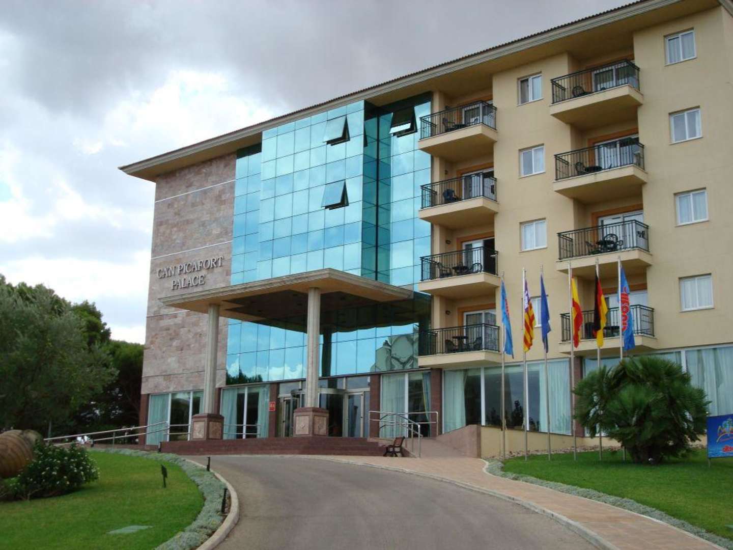 Hier sieht man das Hotel Can Picafort Palace von vorne. macht einen sehr schönen Eindruck und dieser enttäuscht auch nicht vom inneren.