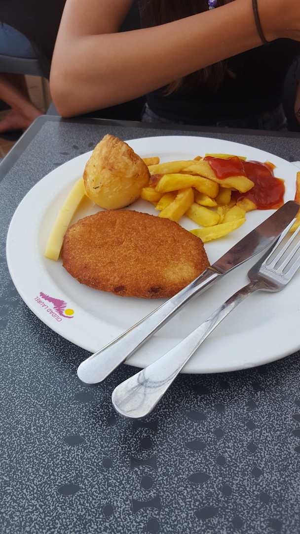 RestaurantWir kommen zum Essen heute gab's bzw war spanien her abend mit Press Fleisch Schnitzel und rohen kartoffeln