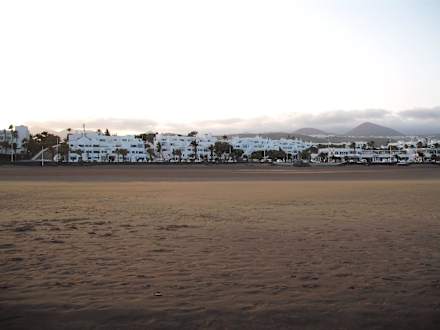 COSTA Mar am späten Abend, vom Strand aus gesehenDas COSTA Mar ist durch die Hauptstraße und den breiten Sandstrand vom Meer getrennt.