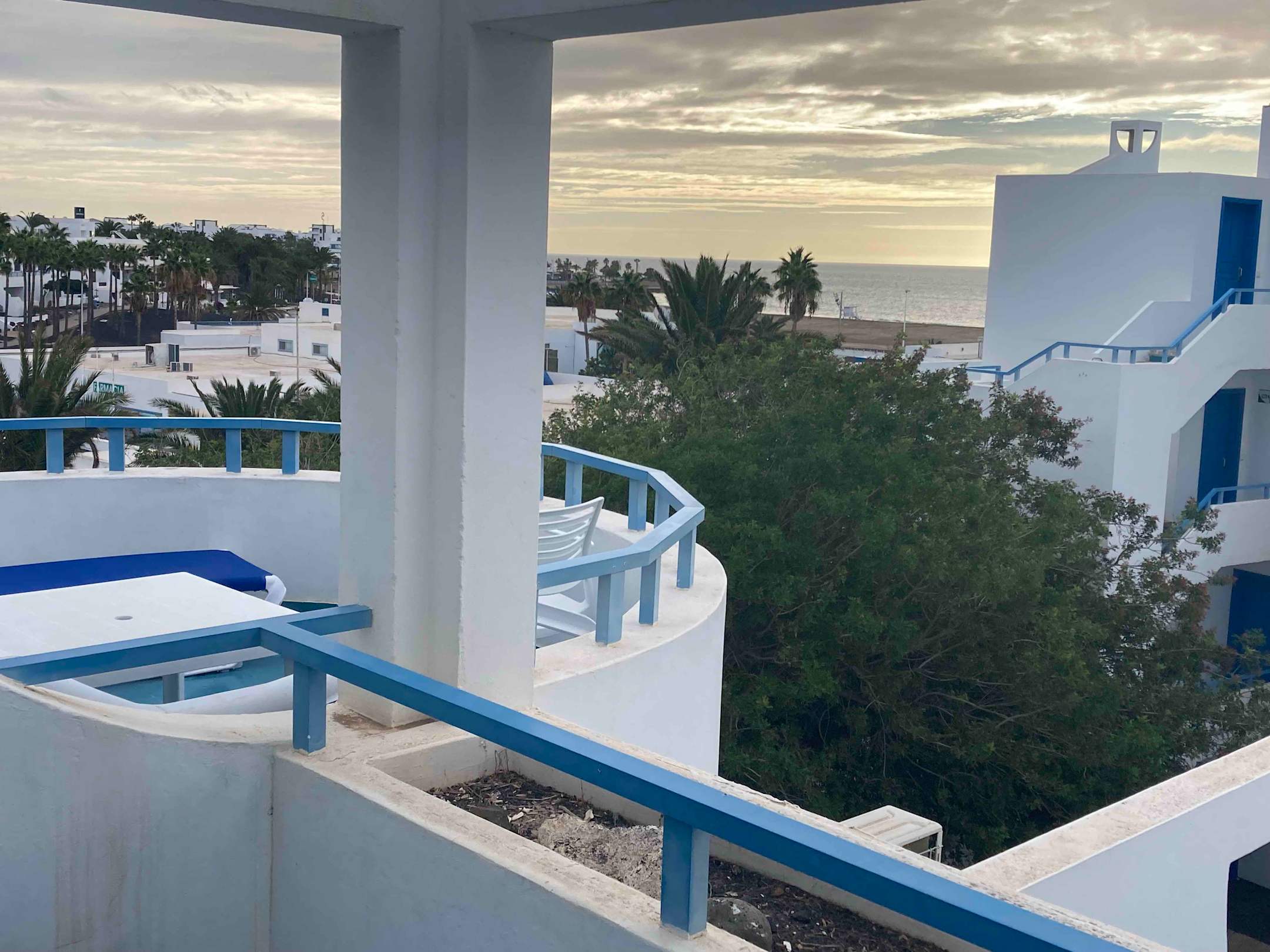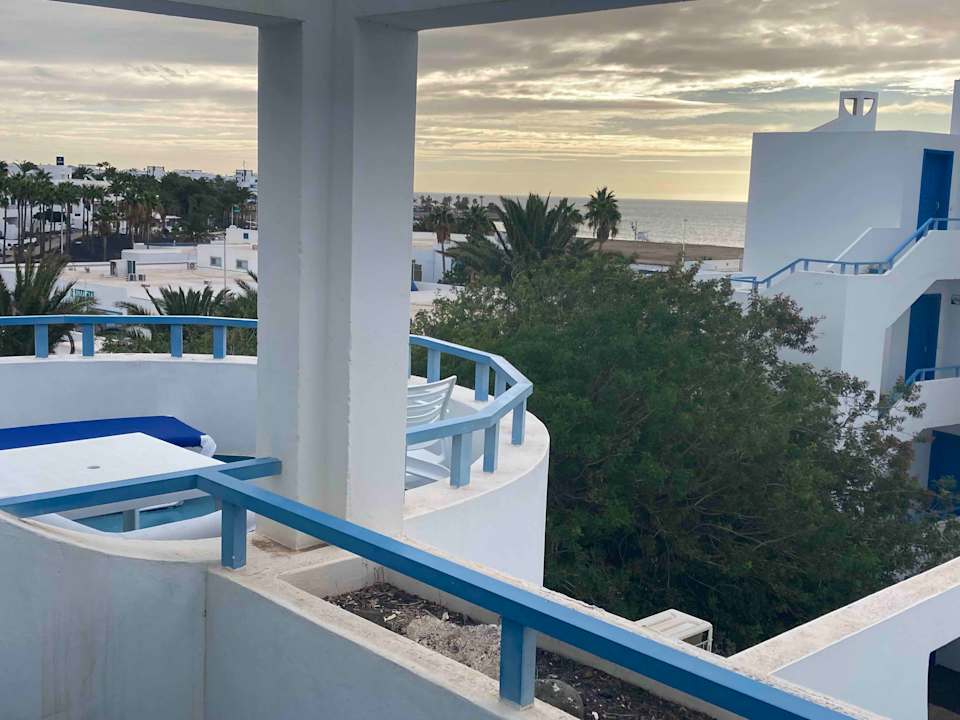 Blick über den Nachbarbalkon zum Meer.