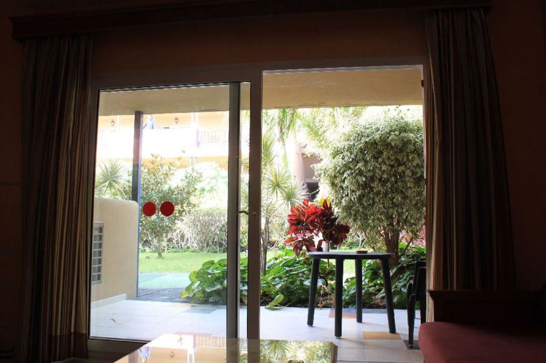 Blick vom Wohnzimmer auf die Terrasse.