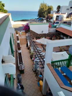 Blick von unserer Dachterrasse auf Innenhof und Meerblick