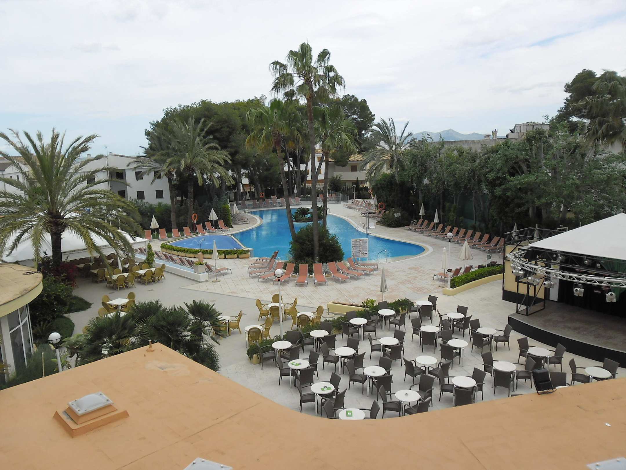 Blick vom Balkon auf die Pool-Anlage