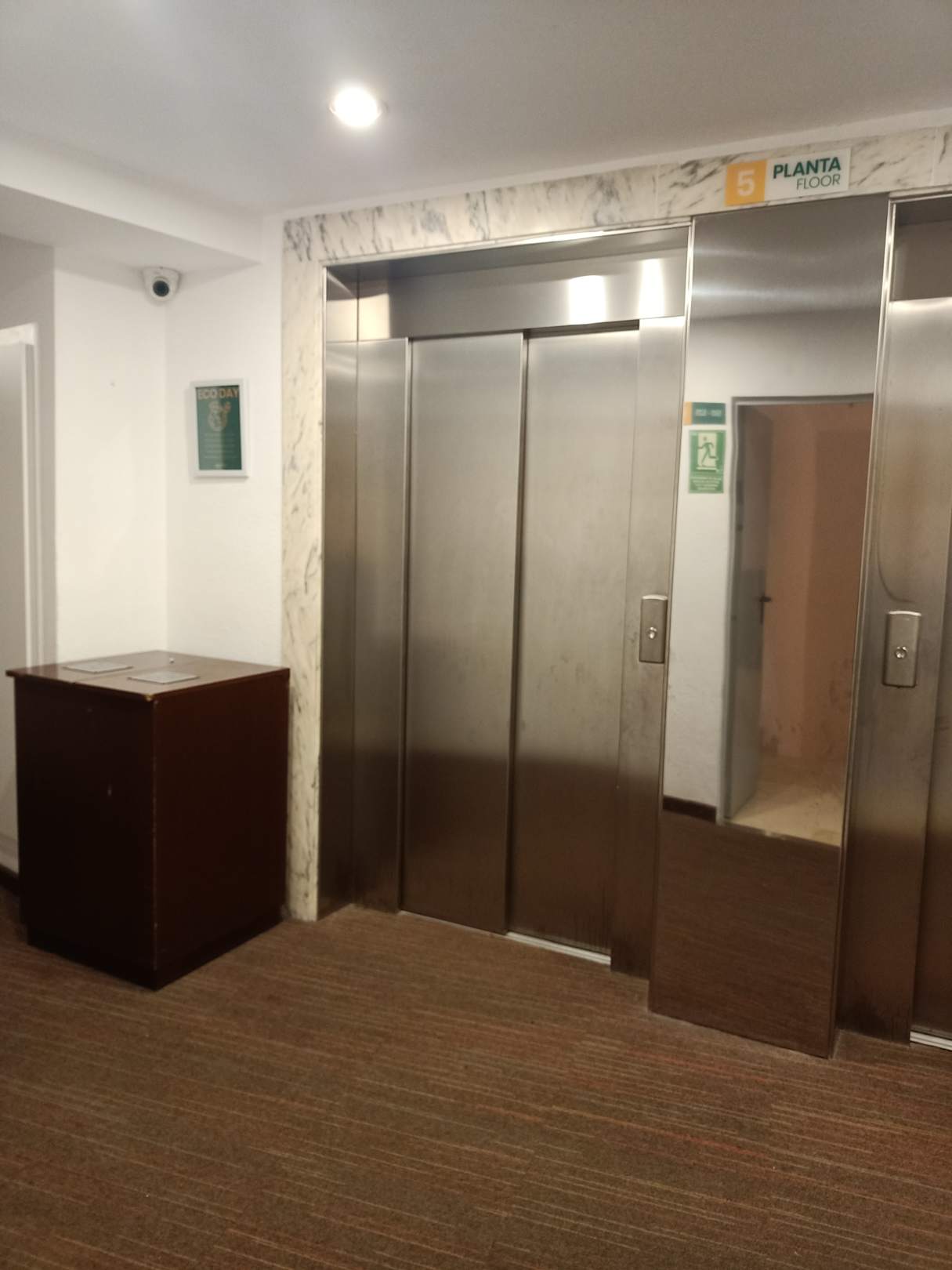 Holzcontainer als Sammelstation für Papier, Plastik, Dosen direkt am Aufzug