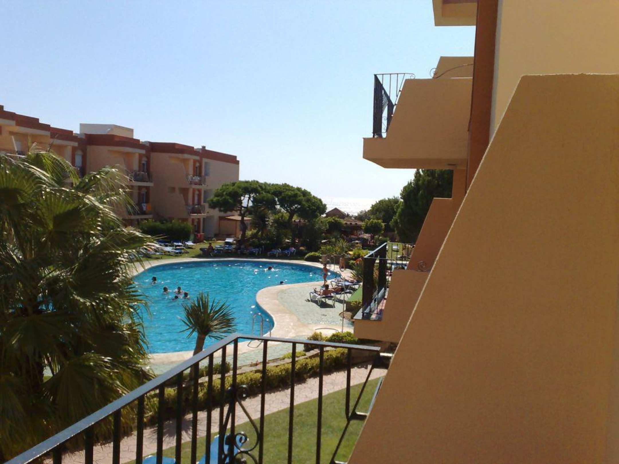 Blick vom Balkon zum Pool