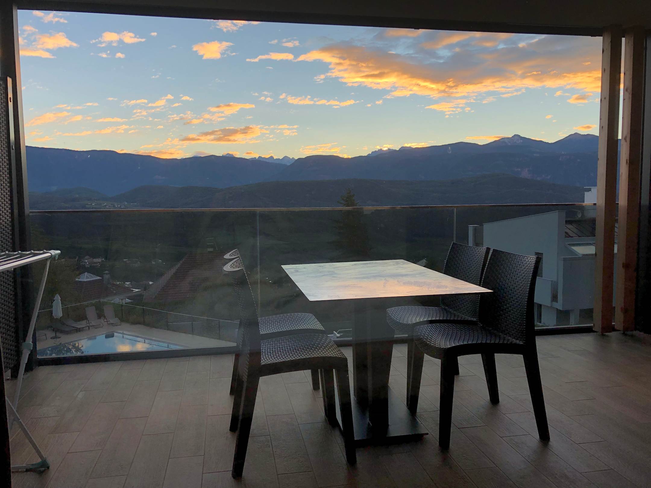 Blick aus dem Bett auf die Berge
