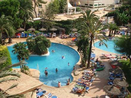 Blick vom Balkon auf den Pool