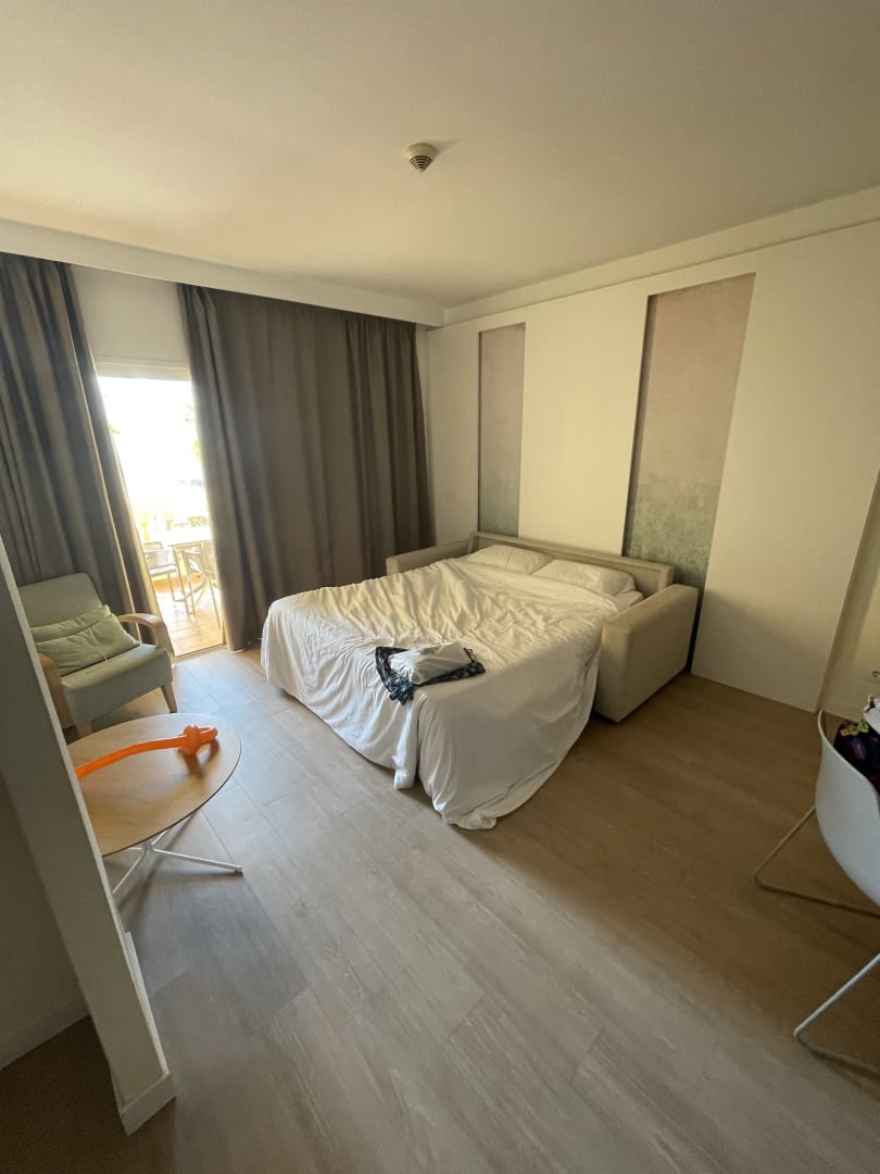 Wohnraum mit Schlafcouch und Blick Richtung Balkon