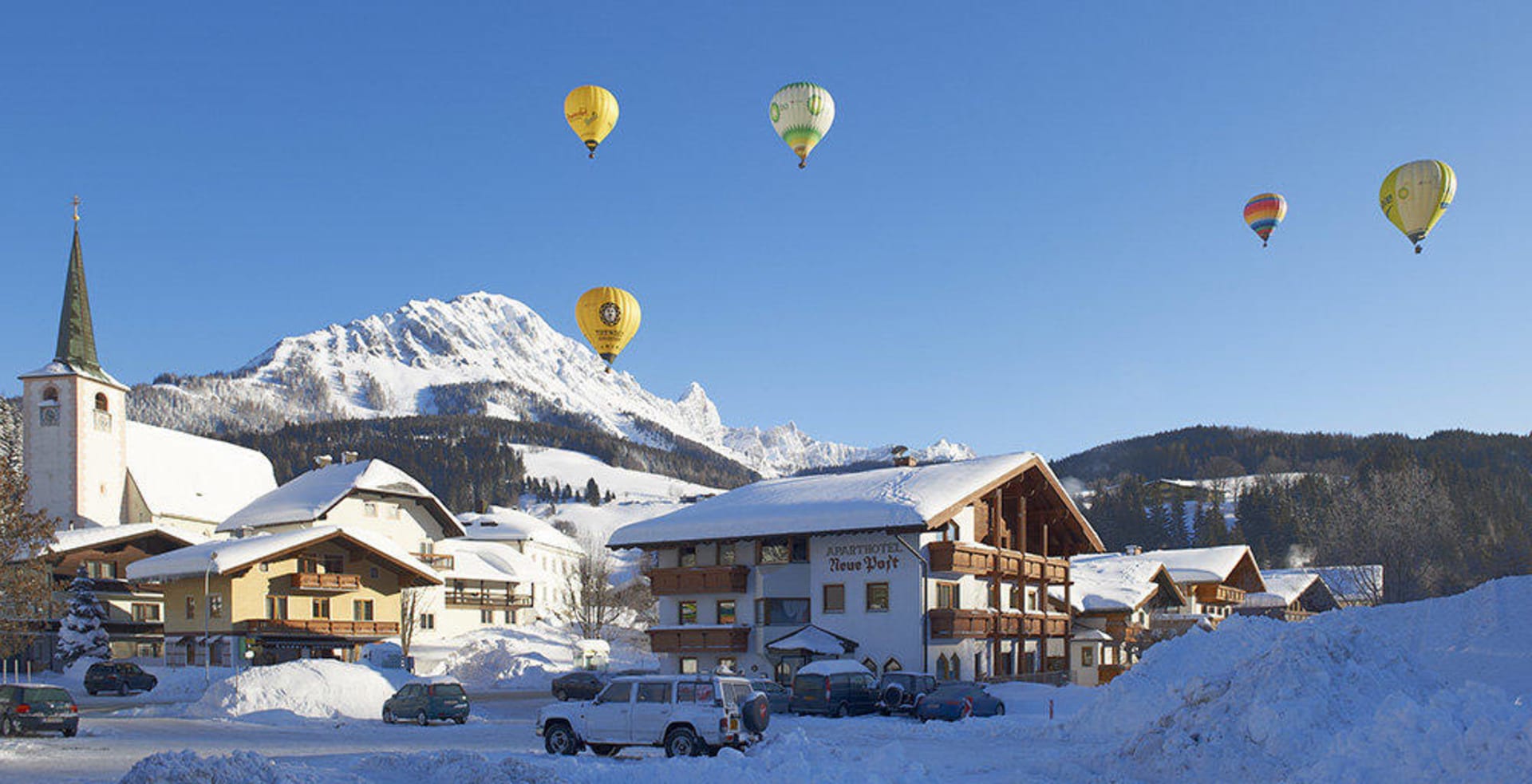 Aussenansicht Neue Post Filzmoos mit Ballons