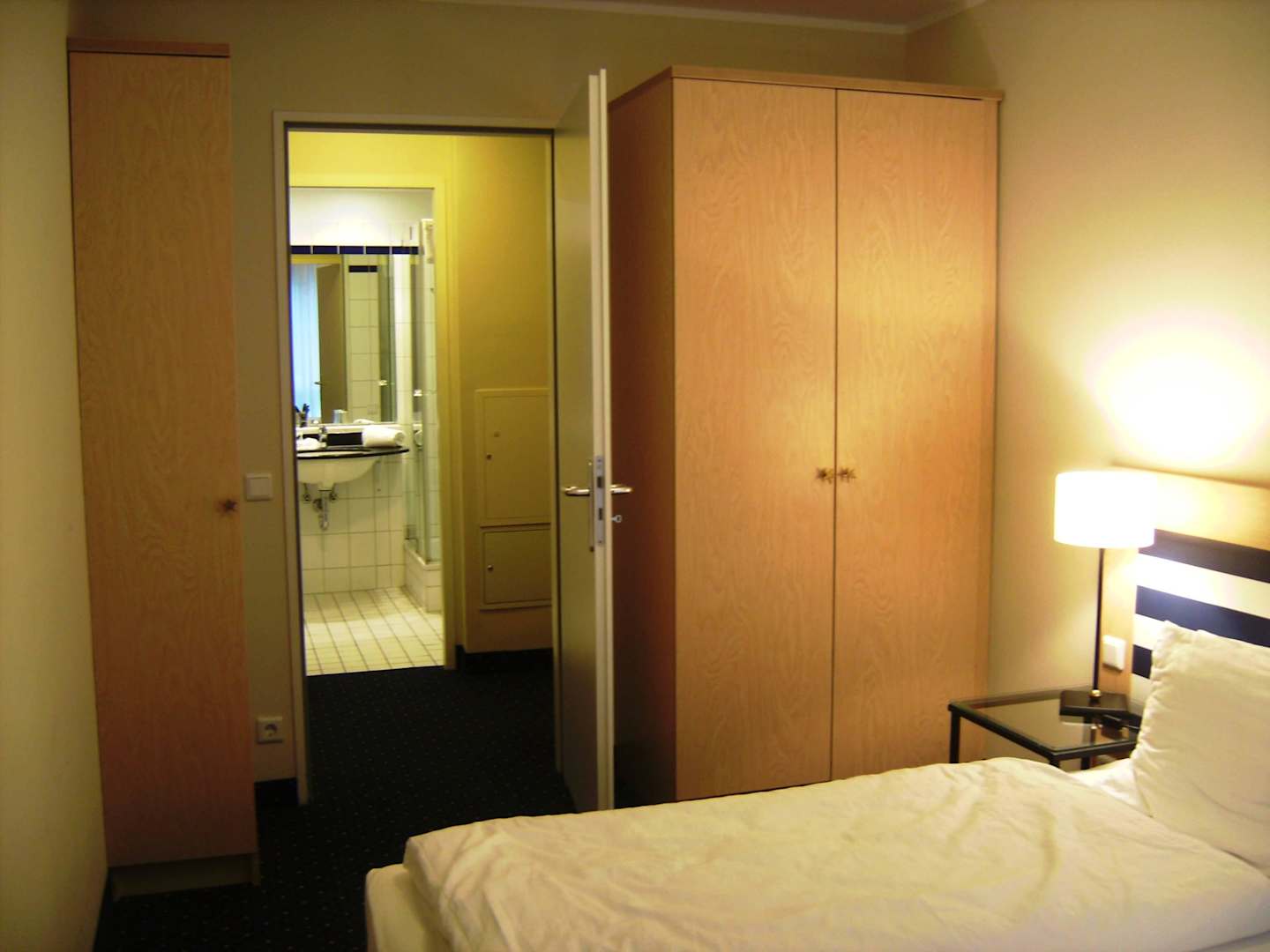 Schlafzimmer mit Blick zu Zwischenflur und Bad