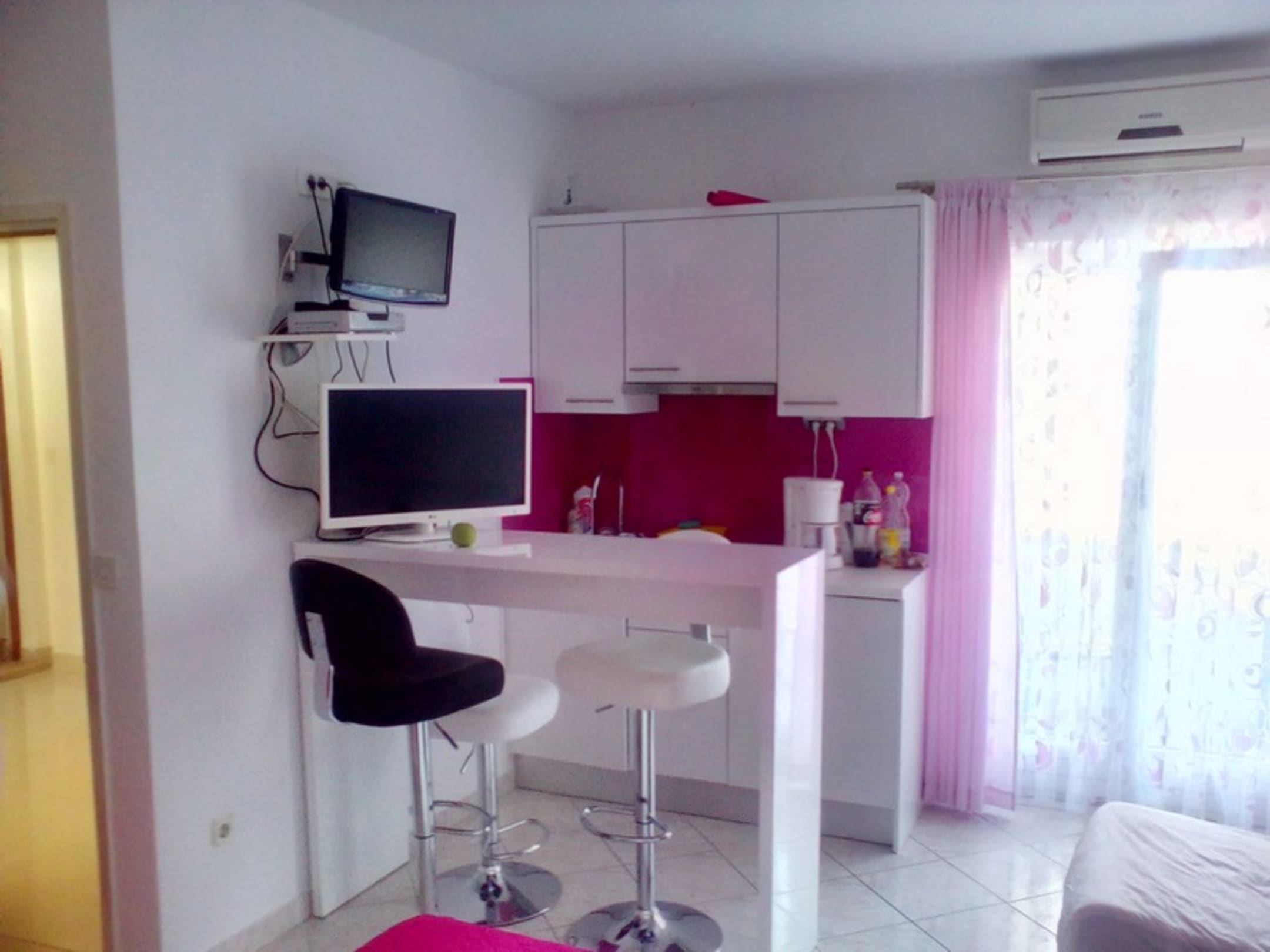 ZimmerZum Balkon, Küchenecke und Sat-TV