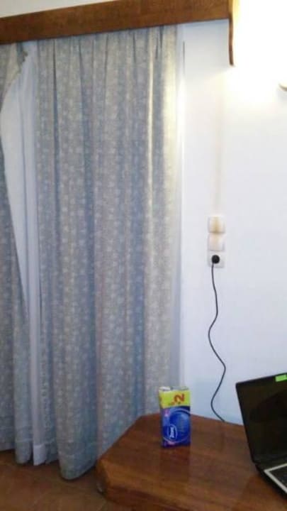 Schlampige Gardinenaufhängung, Brandspuren an Wand