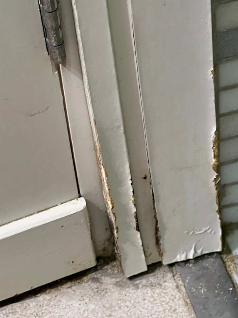 Alle drei Badezimmer immer unter Wasser, daher die rottigen Türrahmen