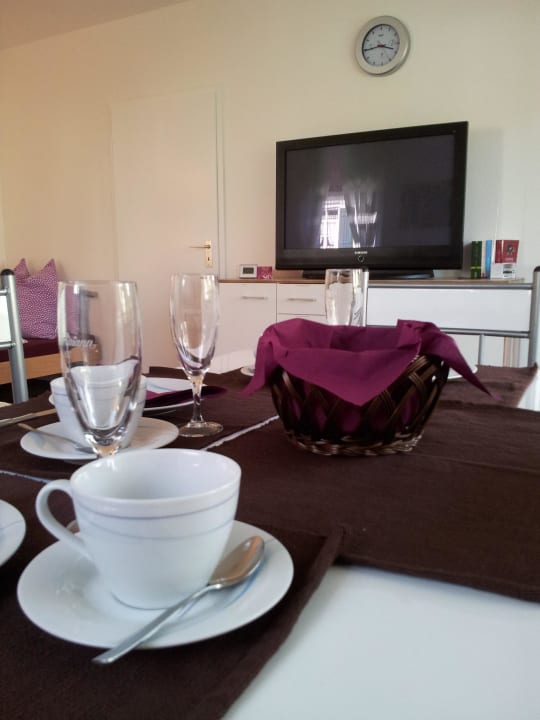 Blick vom Tisch zum TV