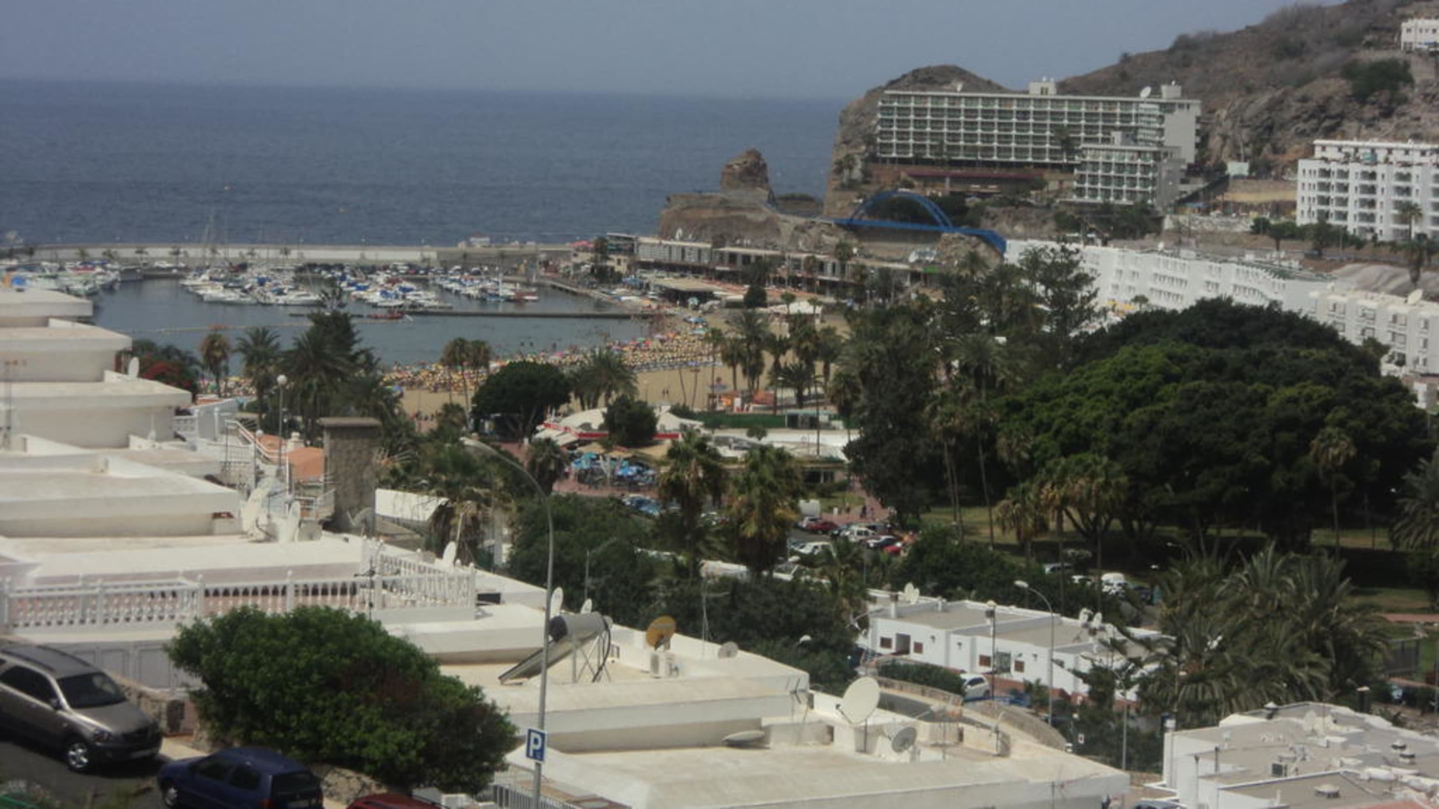Ausblick vom Balkon auf den Puerto Rico Strand