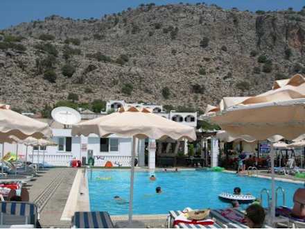 Pool, restaurant and mountain view