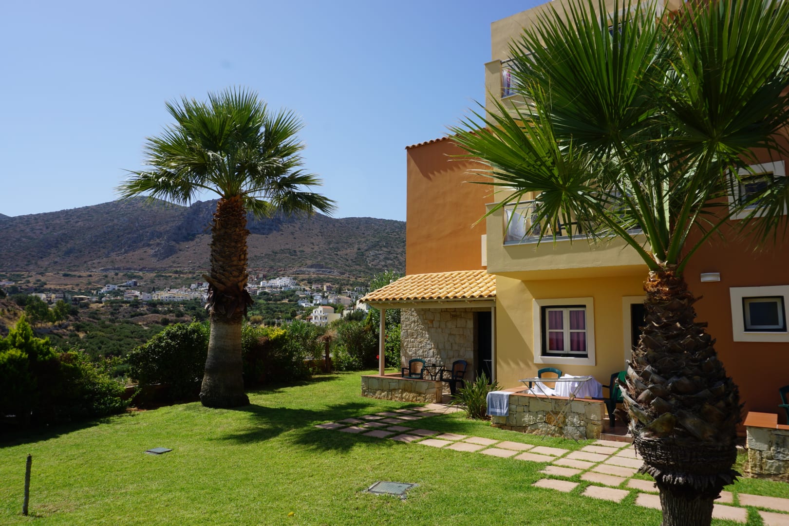 Gästehaus im hinteren Bereich mit Blick in die Berge...und auf Piskopiano...