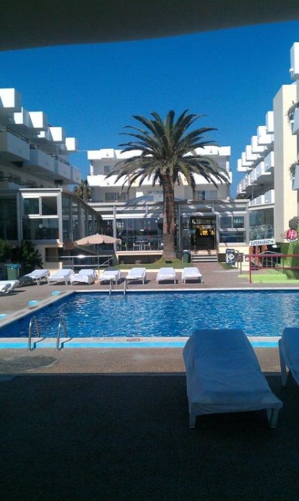 Playa den Bossa la photo se trouve face a la piscine de l'hotel et a méme pas 20 métres derriere moi il y'a la plage ^^