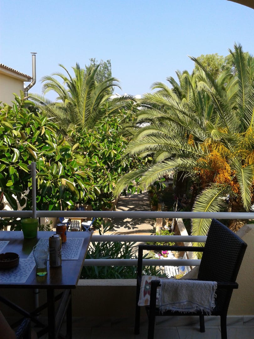 Ausblick vom Balkon in den Garten