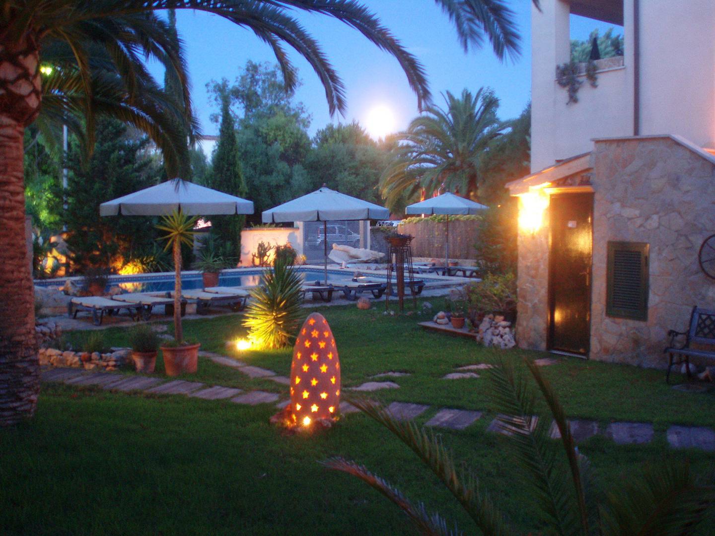 Gartenanlage am Abend