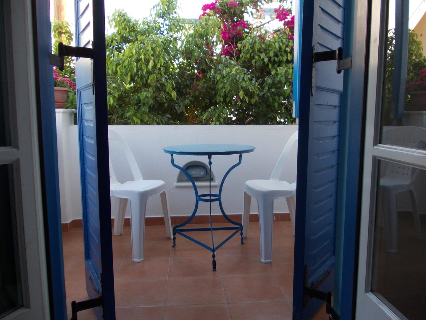 Balkon mit Baum und Blumen