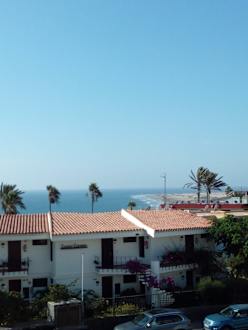 Mittagszeit vom Balkon Blick bis zu den Dünen