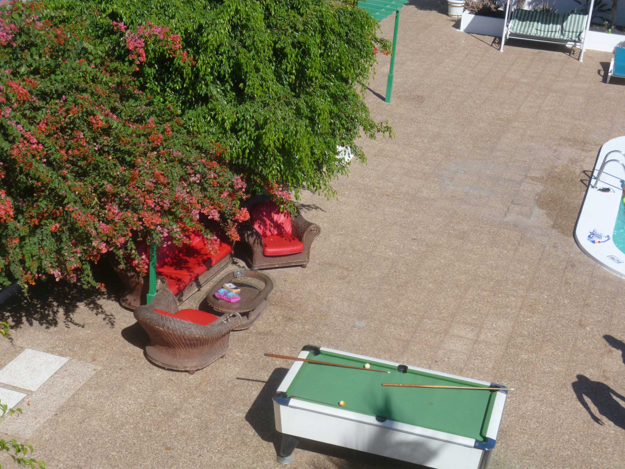 Blick von Zi 127 / Rezeption hinter Büschen
