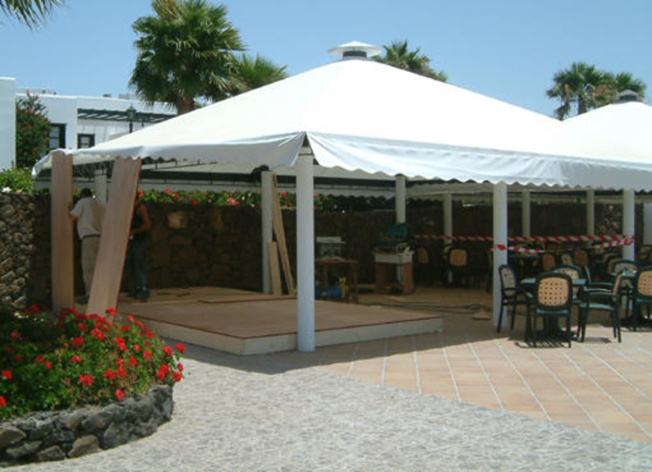 Nach massiver Kritik am nicht vorhandenen Abendprogramm, fing man an, eine Bühne zu zimmern. ...