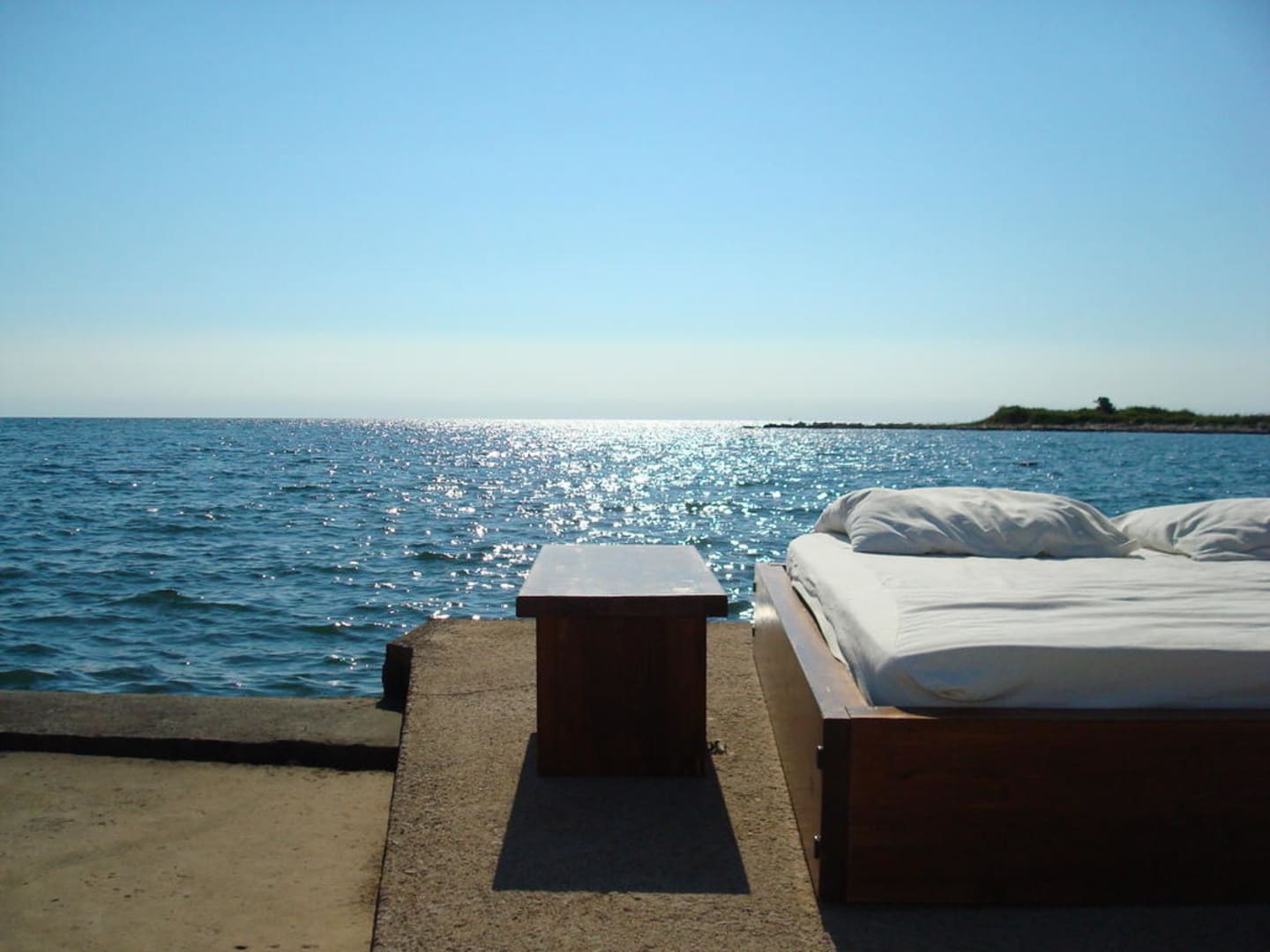 Vorbei am Pool den Weg entlang kommt man an einen kleinen Strandabschnitt mit herrlich großen Liegebetten, chilliger Musik, großer Bar und wenigen Leuten