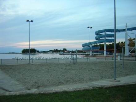 Kostenpflichtige Wasserrutsche an einem Teil des Strandes