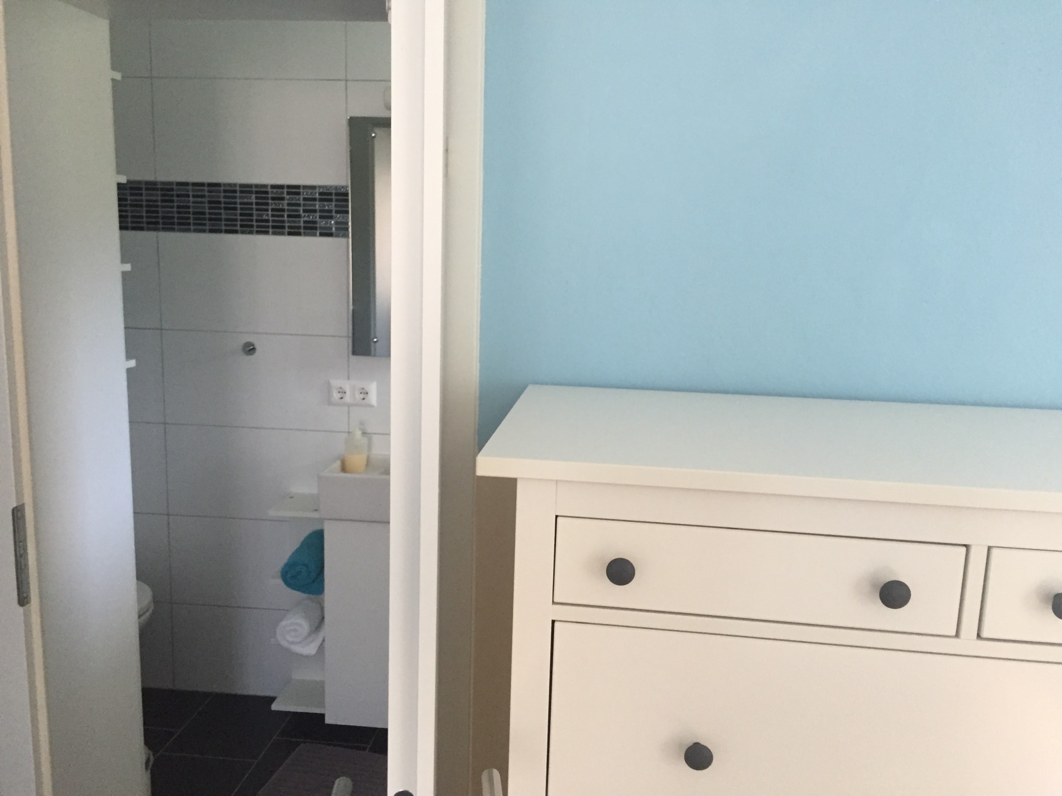 Ein Einblick auf das angeschlossene Bad