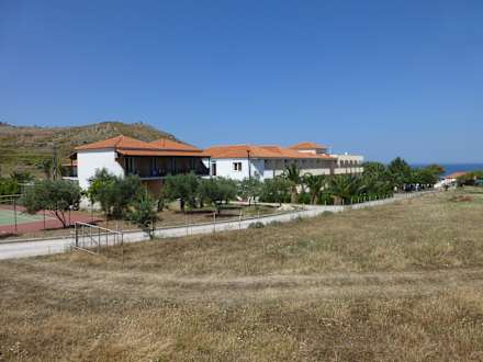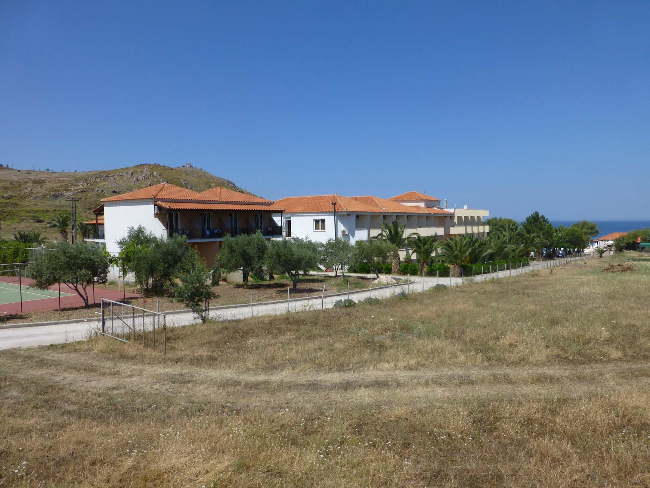 Blick auf das Nebengebäude und Tennisplatz