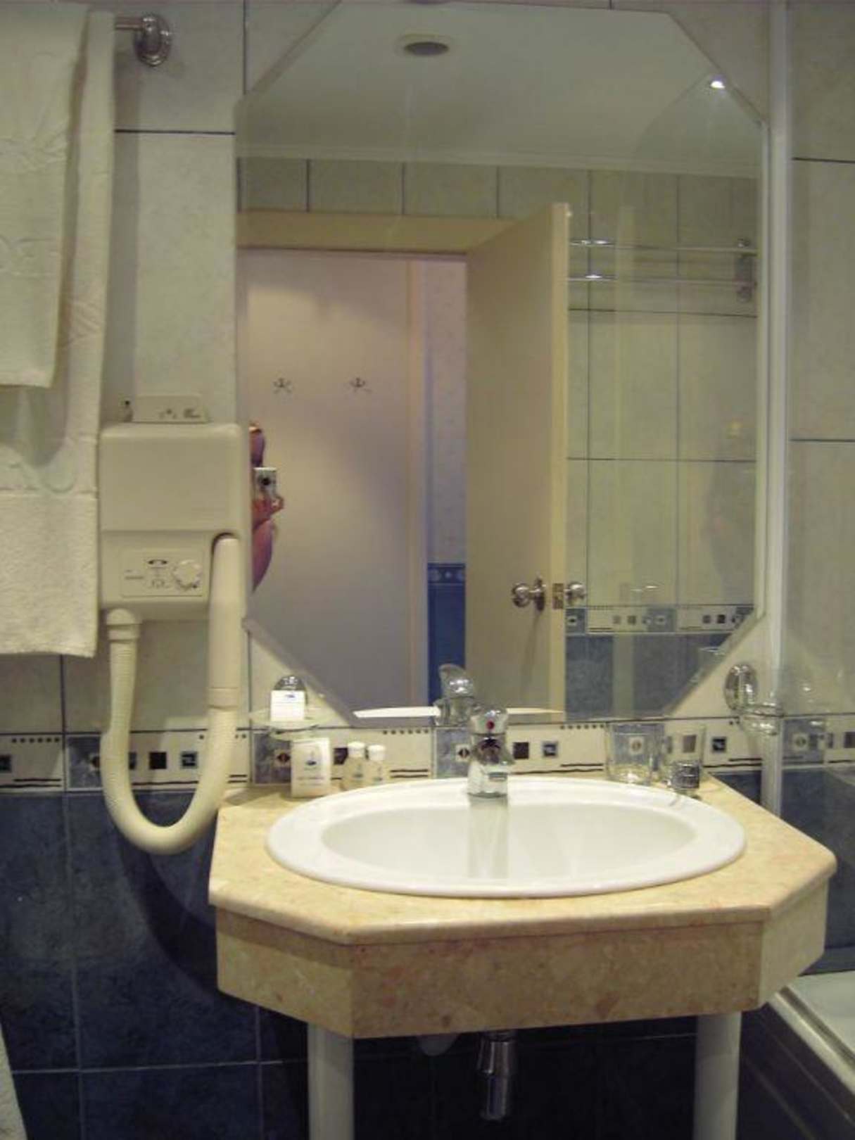 Waschbecken, Spiegel, Fön