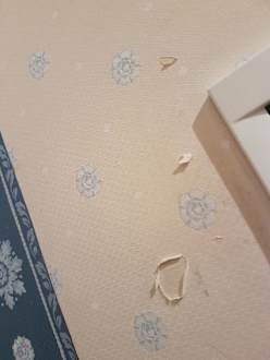 Tapeten teils abgerissen.